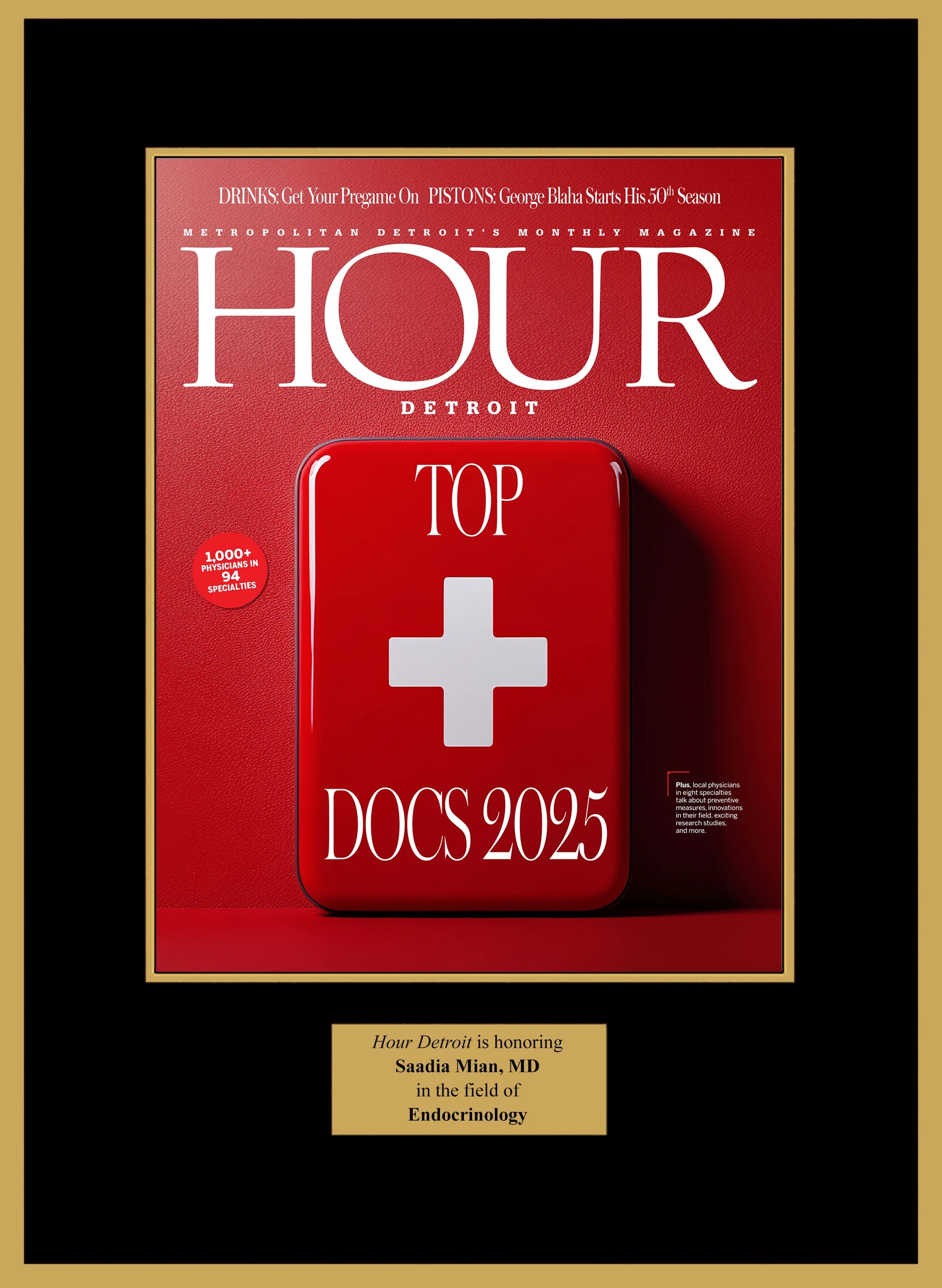Honored to be recognized by Hour Detroit as one of Metro Detroit’s Top Docs for 2025 in the field of Endocrinology.