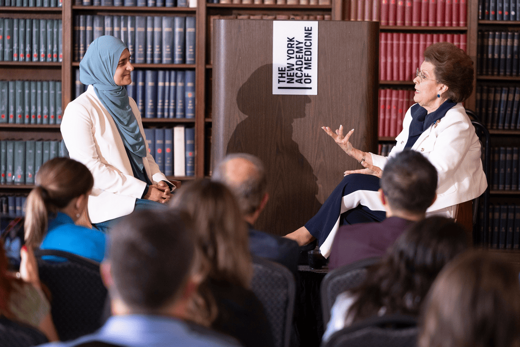 Dr. Saadia Mian with Dr. Antonia Novello, the first woman and first Hispanic to serve as U.S. Surgeon General, at the New York Academy of Medicine.